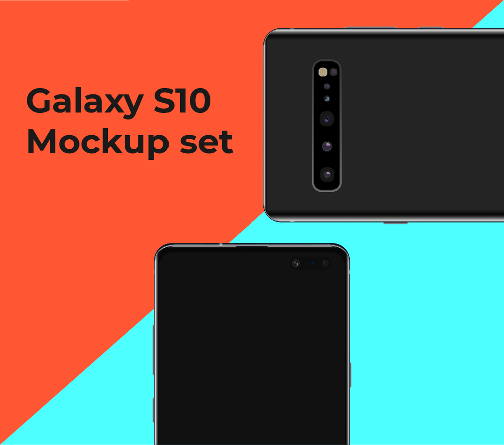 Galaxy S10 Mockup set. Galaxy S10 5G, S10 Plus, S10, S10e. AI, PSD, PNG files.